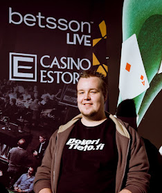 Raising preflop 2 out of the first 4 hands played, Jorgensen found a re-raise from Mika Haarala (pictured above) out of the small blind pushing him off it, but took the second one uncontested. Fast forward five minutes, and the same two players have reached the turn - the board A♣ Q♣ 8♠ 7♥.